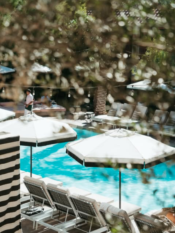 We recommend you have an overall wedding budget of at least $1000 per guest to ensure you have enough room for the venue and all other vendors. Many couples choose to do a full hotel buyout for privacy and ease. Currently, events with over 44 guests often prompt a full buyout and the venue will close the Pink Cabana to outside patrons. The hotel is undergoing an expansion scheduled for October 2026, after which the buyout threshold will increase, so a full buyout won’t be required until you exceed 80 guests.